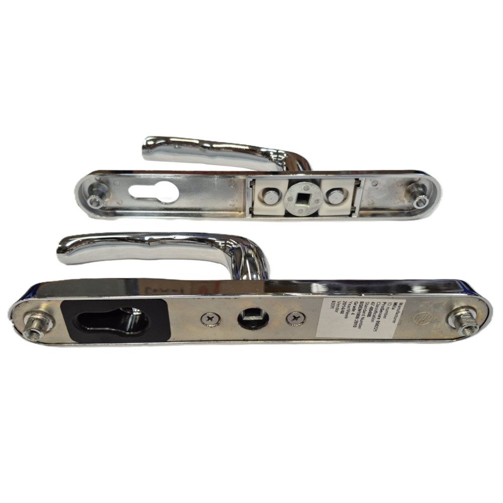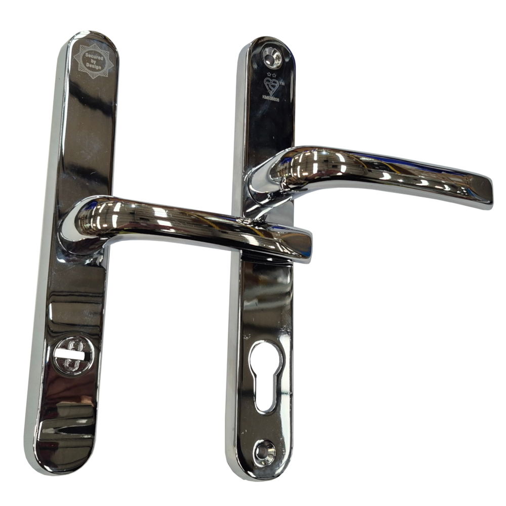 The MILA Pro Secure handle range is Secured by Design (Police approved specification). It combines visible security features with concealed reinforcement technology therefore providing ideal protection against cylinder and handle snapping. It is mounted on a 240mm high backplate, it has 92mm 62mm centres, 211mm screw centres and is suitable for a locking mechanism that takes a euro profile cylinder.