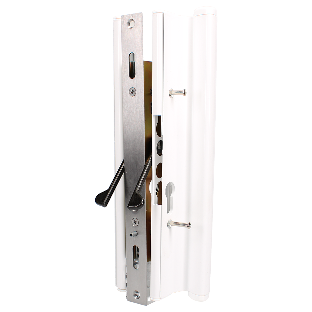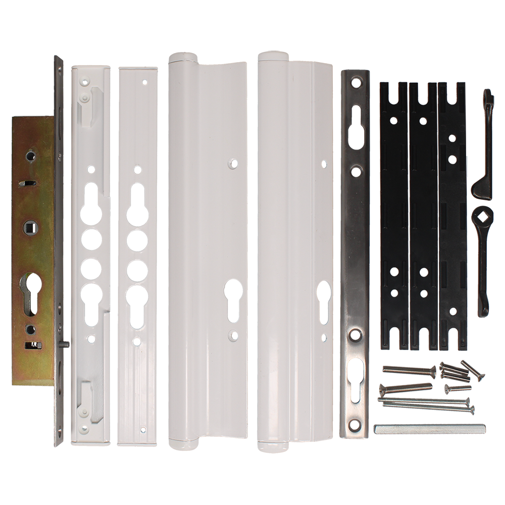 This Twin Locking Point Patio Repair Kit from Chameleon includes a twin point locking mechanism, faceplate, keep, handles, packers and levers. Like many Chameleon products, this lock unit features an adjustable backset thanks to the included packers of various sizes. This kit is perfect for replacing an old or obsolete patio lock case and handles.