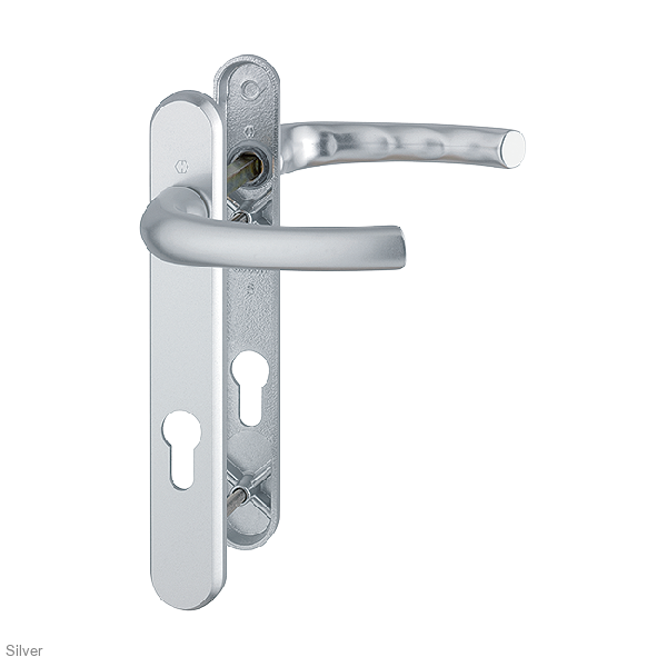 The Hoppe Tokyo 1710RH/3370N/3360N is an aluminium handle set on a narrow backplate ideally suited for use on for profile doors with 92mm centers and 122mm fixing screw centers. It has a maintenance-free slide bearing, bolt through M6 fixings and a euro profile cut out.