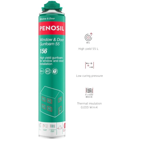 PENOSIL 156 Window & Door Gunfoam 55 is a professional one-component polyurethane gun foam, now available in a convenient trade pack of 12. Designed for efficient window and door installation during warm weather, this high-yield foam offers excellent adhesion, strong insulation performance, and a neat, durable, airtight finish across a wide range of materials. Perfect for busy installers, it works reliably in temperatures up to +40°C, curing with low pressure and moderate expansion for controlled, mess-free application.