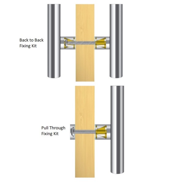 This versatile pull handle is suitable for left- and right-handed doors and can be installed in two different fixing configurations using the Supa fixing kit (sold separately). Installers can choose either a traditional through-fix method or a back-to-back inline fixing, allowing flexibility across single or double door setups.